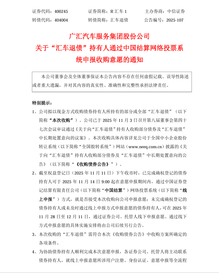 - 下一篇:广汇汽车服务集团股份公司 关于“汇车退债”持有人通过中国结算网络投票系 统申报收购意愿的通知