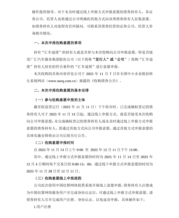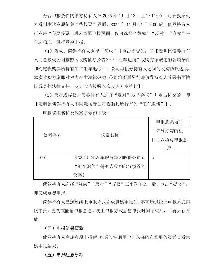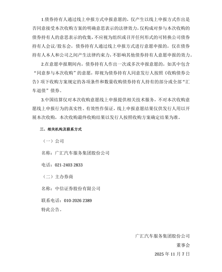 广汇汽车服务集团股份公司 关于向“汇车退债”持有人收购部分债券及“汇车 退债”中长期处置意向的公告