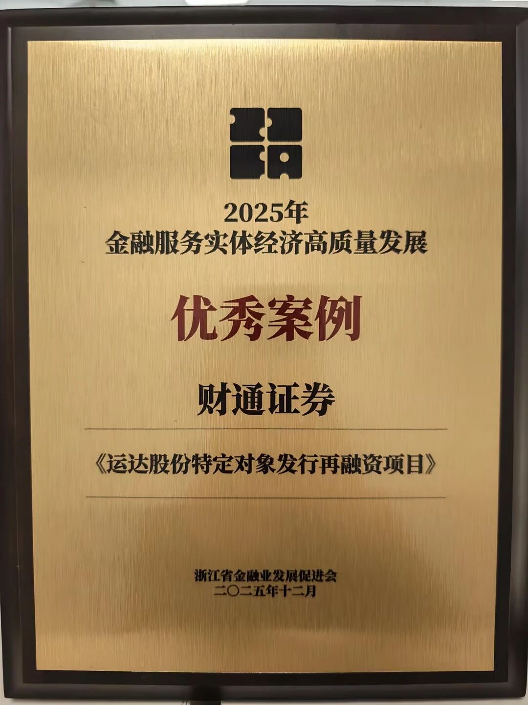 【捷报通传丨财通证券获评2025年金融服务实体经济高质量发展优秀案例】:您是否在找【财通证券同花顺交易软件】、【同花顺财通证券手机版】、【同花顺财通证券期权版】、【同花顺财通证券经典版】、【财通证券同花顺手机版】、【财通证券大智慧专业版】、【财通证券手机交易软件】、【财通证券手机炒股软件】、【财通证券融资融券开户】、【财通证券融资融券门槛】,【捷报通传丨财通证券获评2025年金融服务实体经济高质量发展优秀案例】【近日,浙江省金融业发展促进会发布2025年金融服务实体经济高质量发展优秀案例推荐认定结果。财通证券申报的《运达股份特定对象发行再融资项目》成功入选。项目简介财通证券担任保荐机构的运达能源科技集团股份有】