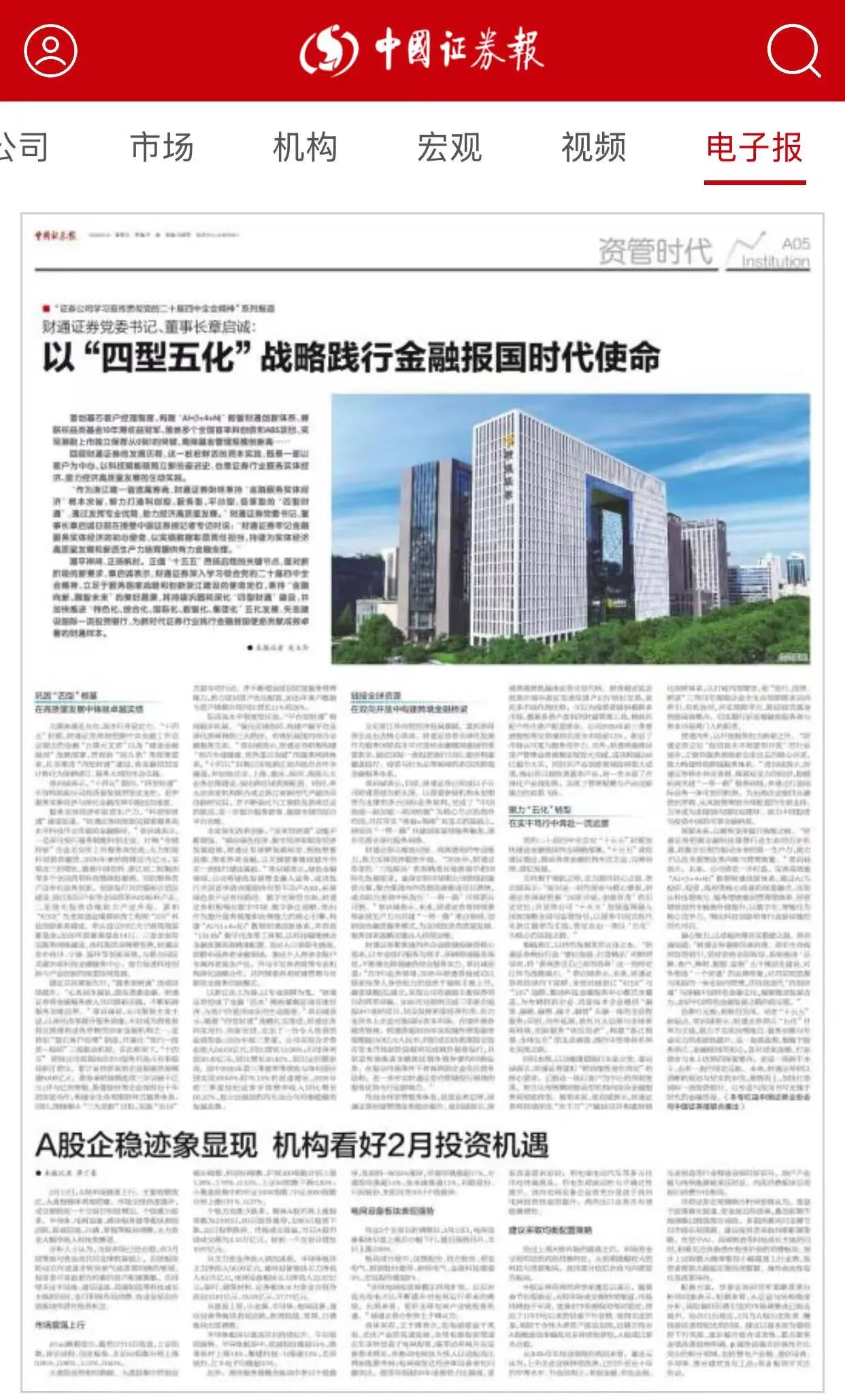 媒体聚焦 | 财通证券党委书记、董事长章启诚:以“四型五化”战略,践行金融报国使命